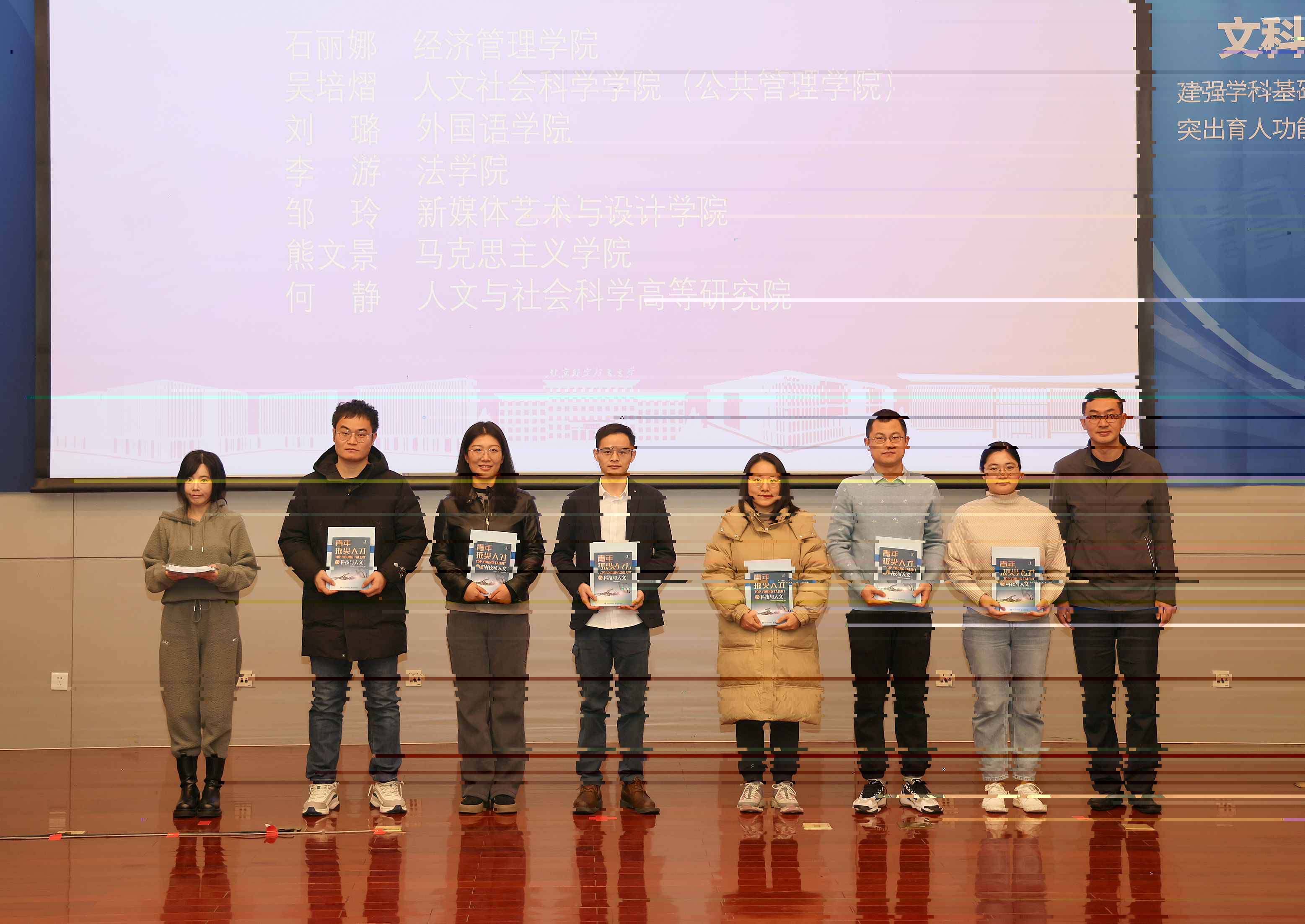 會上,趙長祿為人文社科青年教師研修班校外特聘專家代表頒發聘書。劉樹春、張海蘭為第一期人文社科青年教師研修班學員頒發培訓證書,程波為第二期研修班學員代表贈送《北航青年拔尖人才基礎前沿成果系列叢書》。